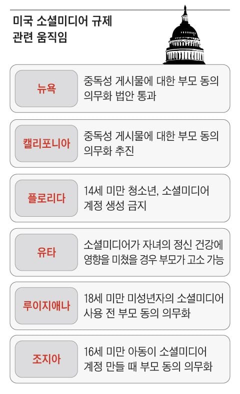 뉴욕주뿐만 아니라 아동과 청소년을 보호한다는 명분 아래 소셜미디어 제한법은 미국 전역에서 관심을 받고 있는 주제이다.