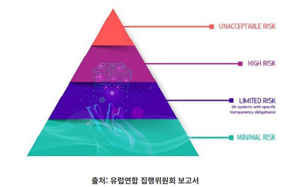 이에 대해 간략히 소개하자면, AI시스템의 위험도를 4단계로 나누어 차등 규제하는 방법이다.